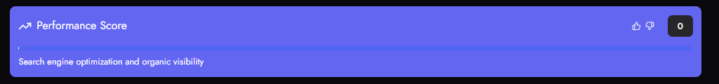 The performance score reflects how many of your tracked keywords are ranking in Google’s top 10 results. A higher score means stronger visibility, while a score of 0 indicates that none of the tracked keywords are ranking on page one.