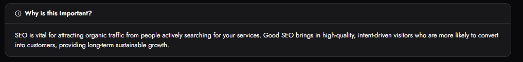SEO helps your business capture long-term demand from customers searching for your services. If your business is not ranking for key terms, you are missing organic traffic, leads, and opportunities.
