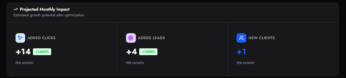 Estimates how many new paying customers could be gained per month based on increased leads.