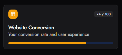 This score is informed by visible factors such as your calls-to-action (CTAs), copy, trust signals, conversion widgets, and overall design accessibility. A low score indicates "conversion gaps" where visitors are likely dropping off instead of reaching out to your business.