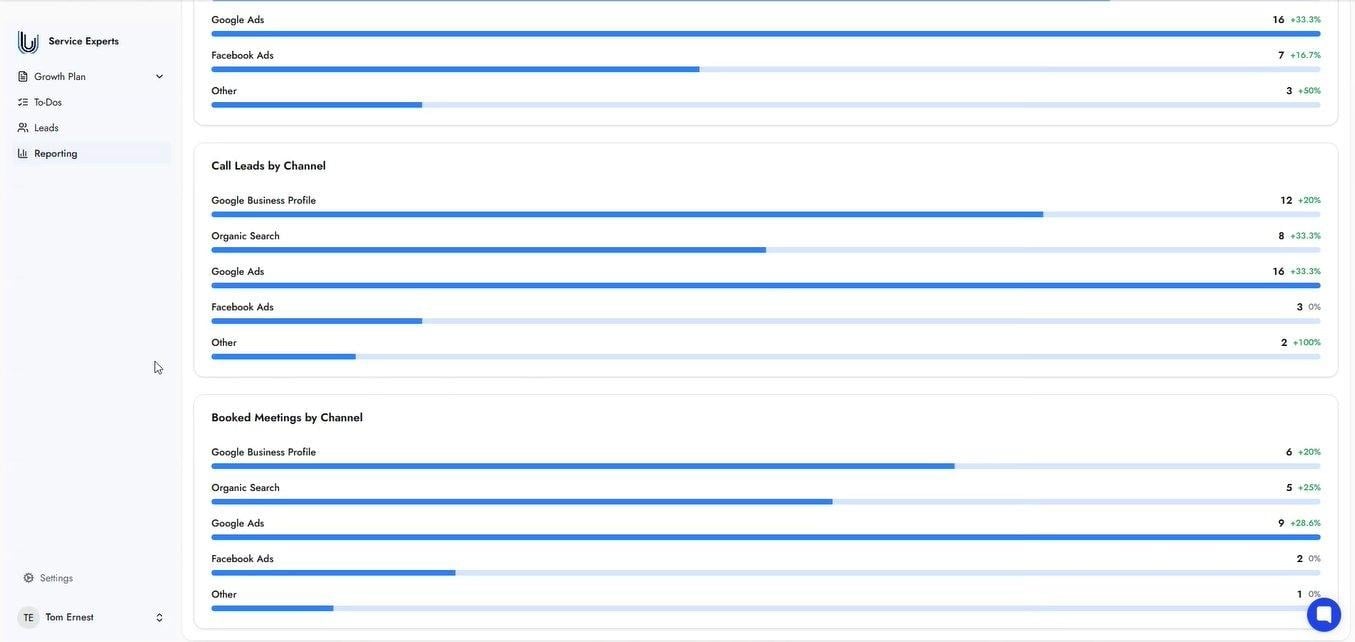 The Reporting section is your live marketing performance dashboard. It consolidates the results of every the platform-managed campaign in one place, allowing you to monitor lead generation and ROI across all active channels without logging into multiple platforms.